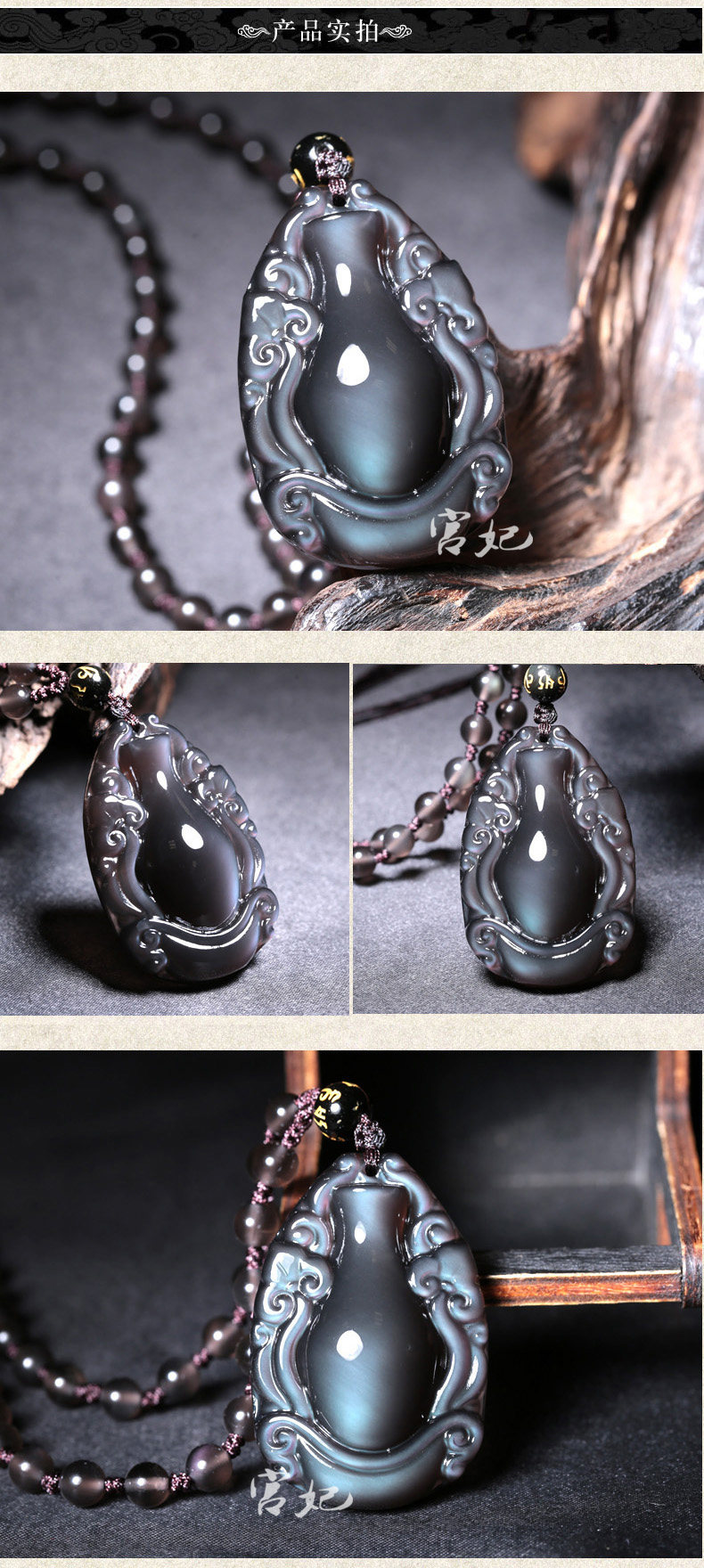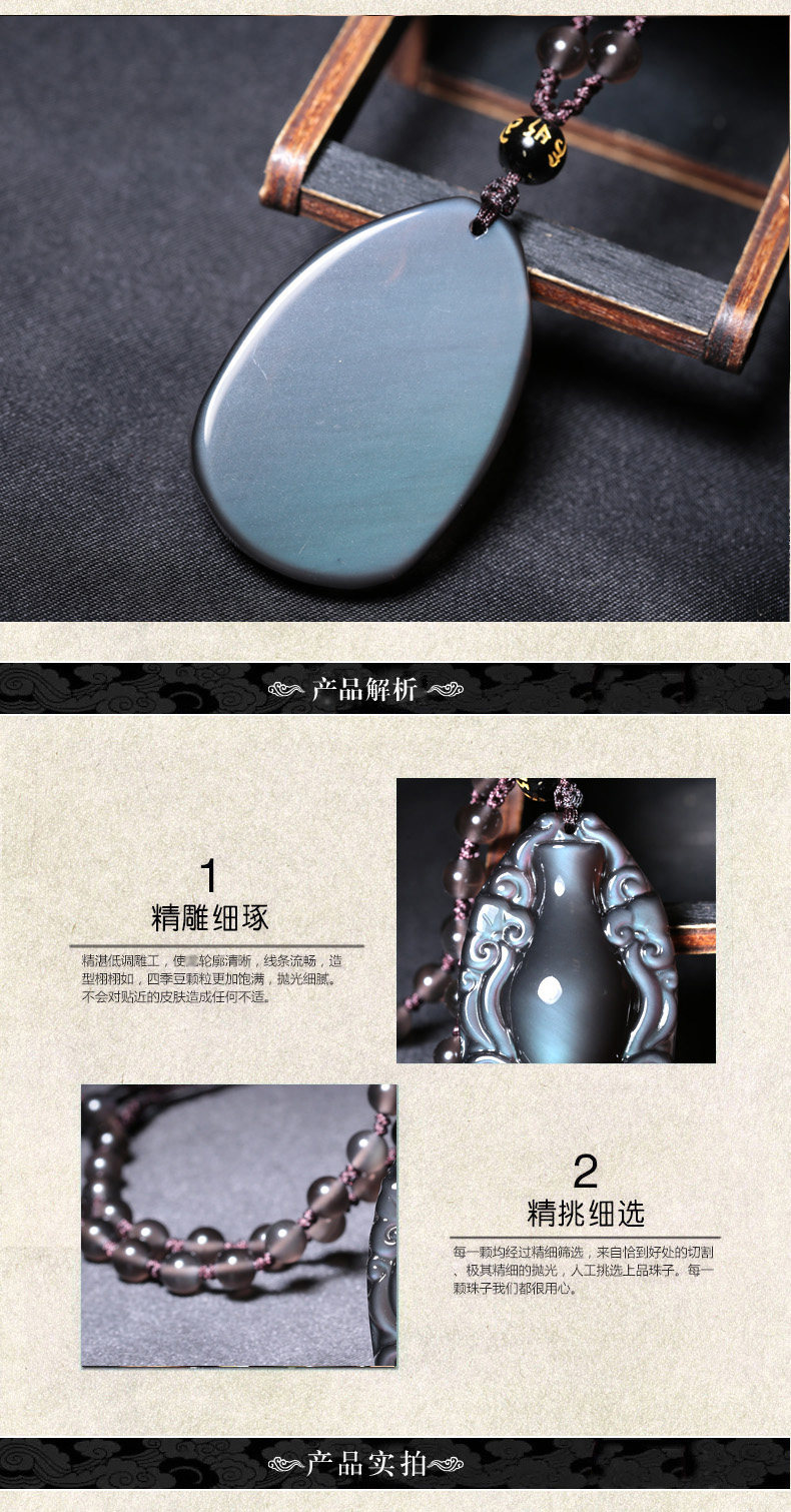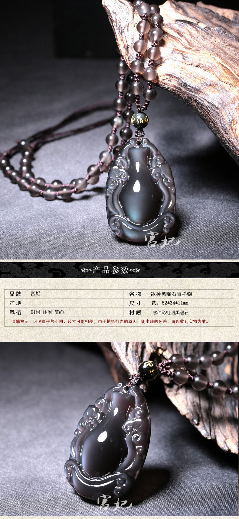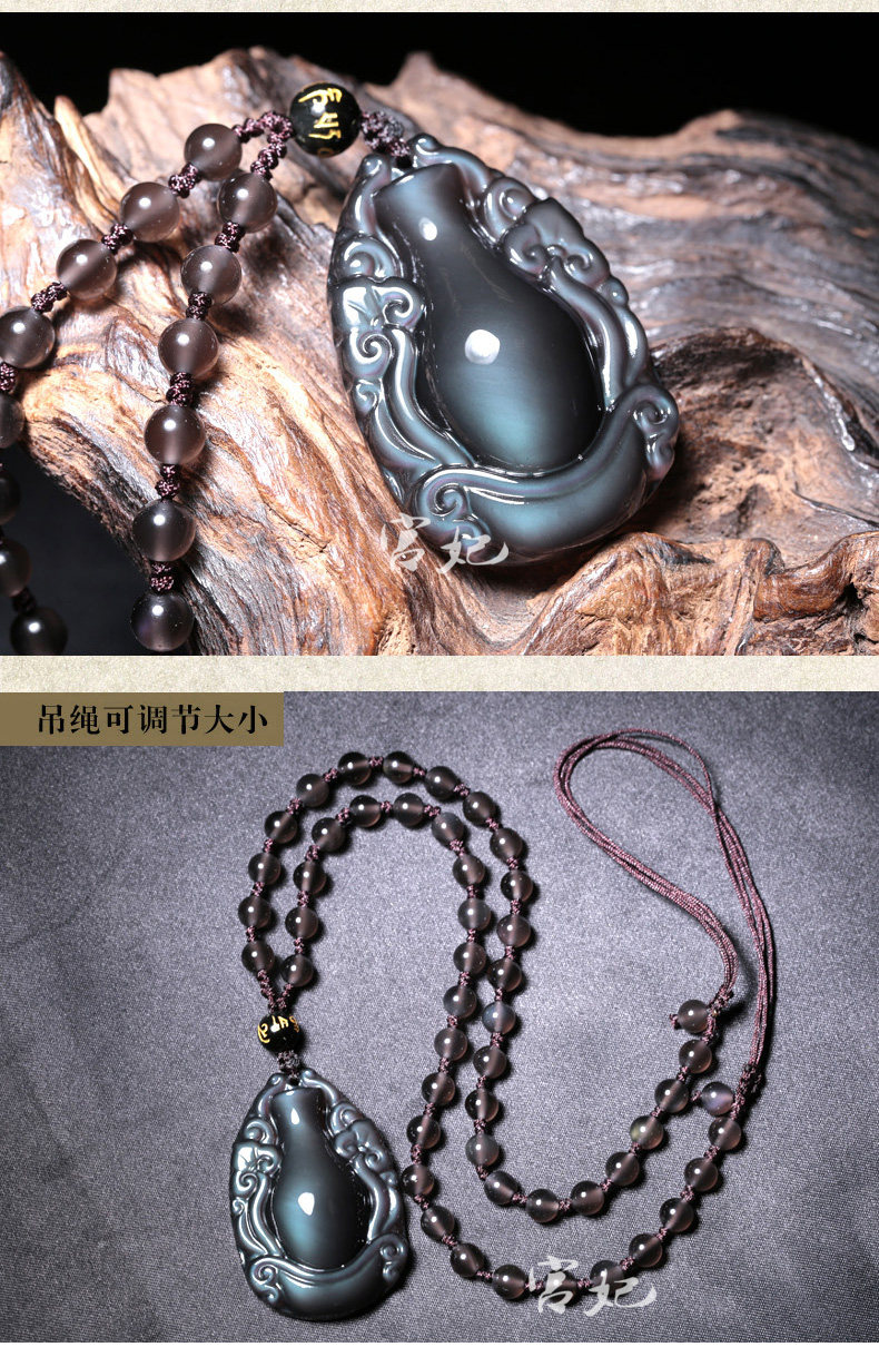 2017年生肖兔吉祥物-宝瓶瑞兽 黑曜石吊坠金符如意男女款护身符