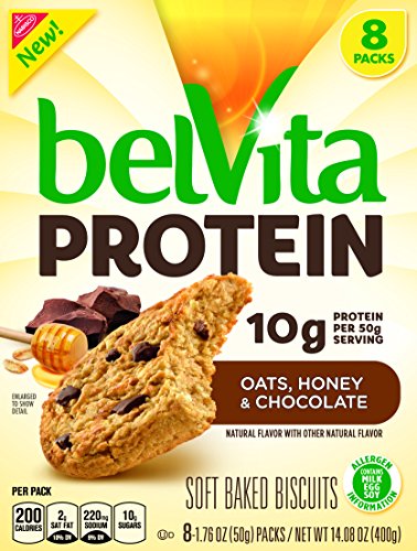 -. Feature : belVita PROTEIN Soft Breakfast Biscuits deliver 10 grams of high quality protein per serving / Packed with wholesome ingredients, belVita PROTEIN biscuits are a deliciously smart way to start your day / belVita is made with no artificial flavors, colors, or sweeteners / Every biscuit is individually wrapped for freshness, making it easy to enjoy at home or on-the-go / This order contains one 14.08 ounce box of eight belVita Protein Soft Breakfast Biscuits in Oat, Chocolate & Honey