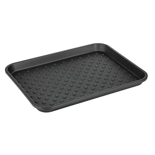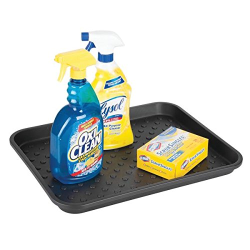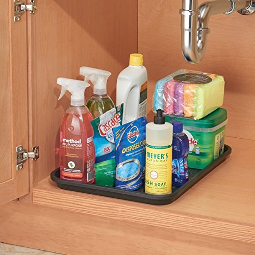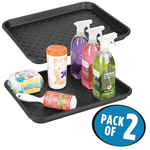 mDesign Kitchen Cabinet Under the Sink Protector Tray for Cleaning Supplies, Sponges, Trash Bags– Pack of 2, Black
