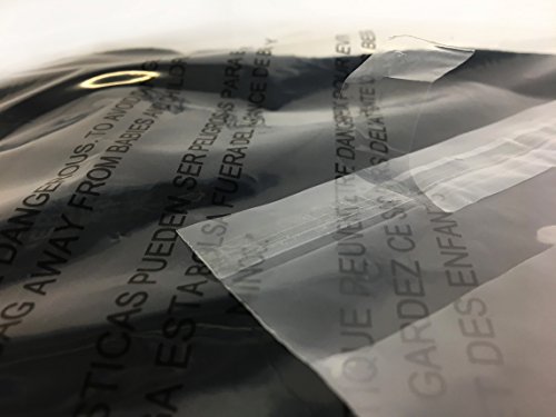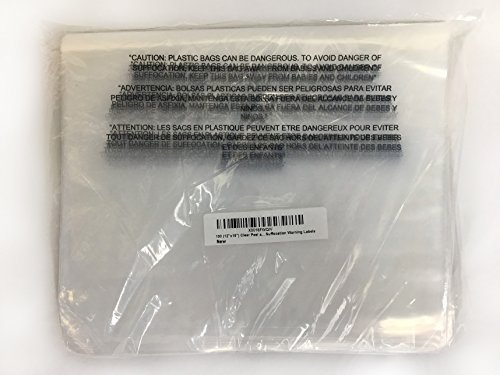 100 (12"x18") Clear Peel and Seal 1.5 Mil Poly Bags with Suffocation Warning Labels