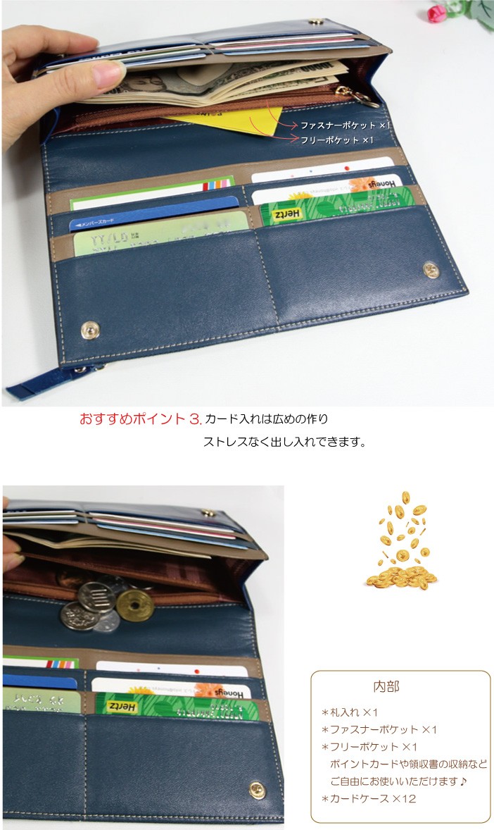 キーワード 革 長財布 レディース レザー サイフ 財布 ウォレット 小銭入れ 皮上質本革の華やかロングウォレット