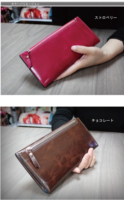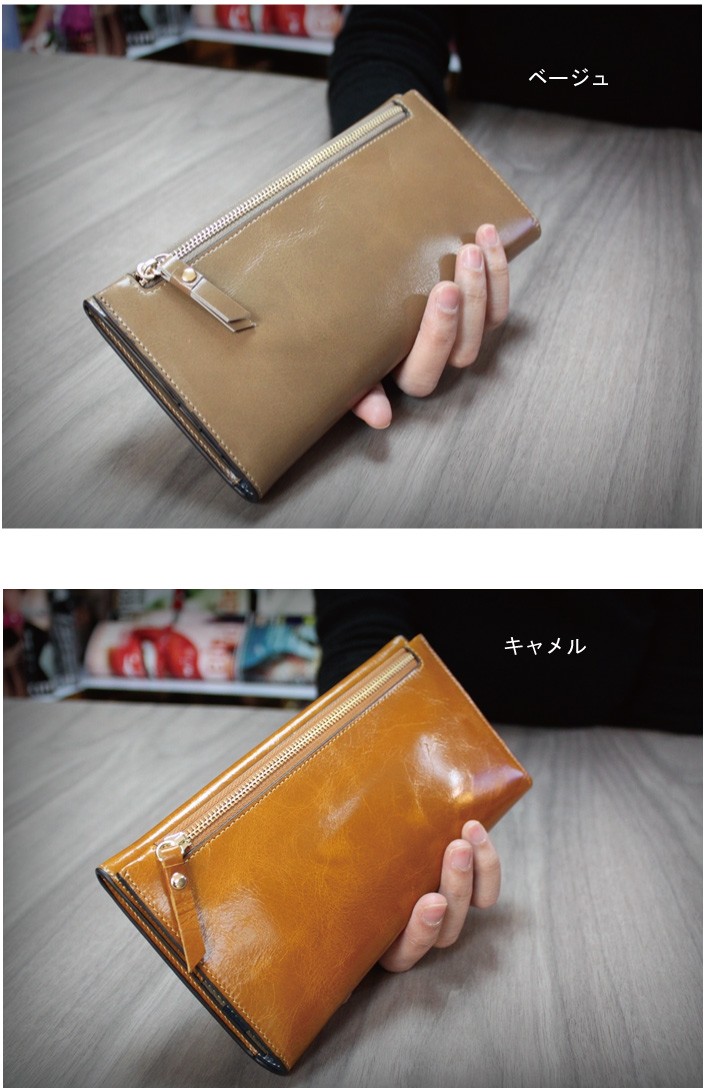 艶やかな本革長財布 レディース 牛革 シンプル スタイリッシュ