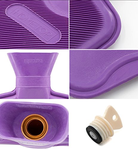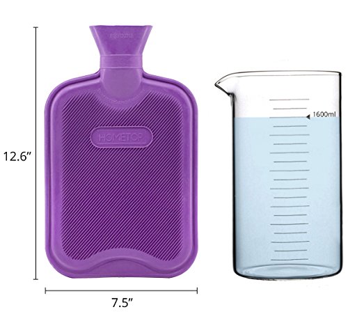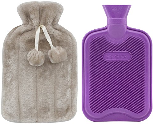 Premium Classic Rubber Hot Water Bottle and Luxurious Faux Fur Plush Fleece Cover w/ Pom Pon Decor (Beige)