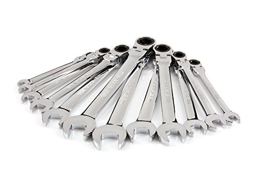 TEKTON WRN57190 Flex-Head Ratcheting Combination Wrench Set with Roll-up Storage Pouch, Metric, 8 mm - 19 mm, 12-Piece