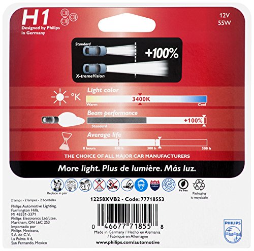 Philips H1 X-tremeVision Upgrade Headlight Bulb, 2 Pack