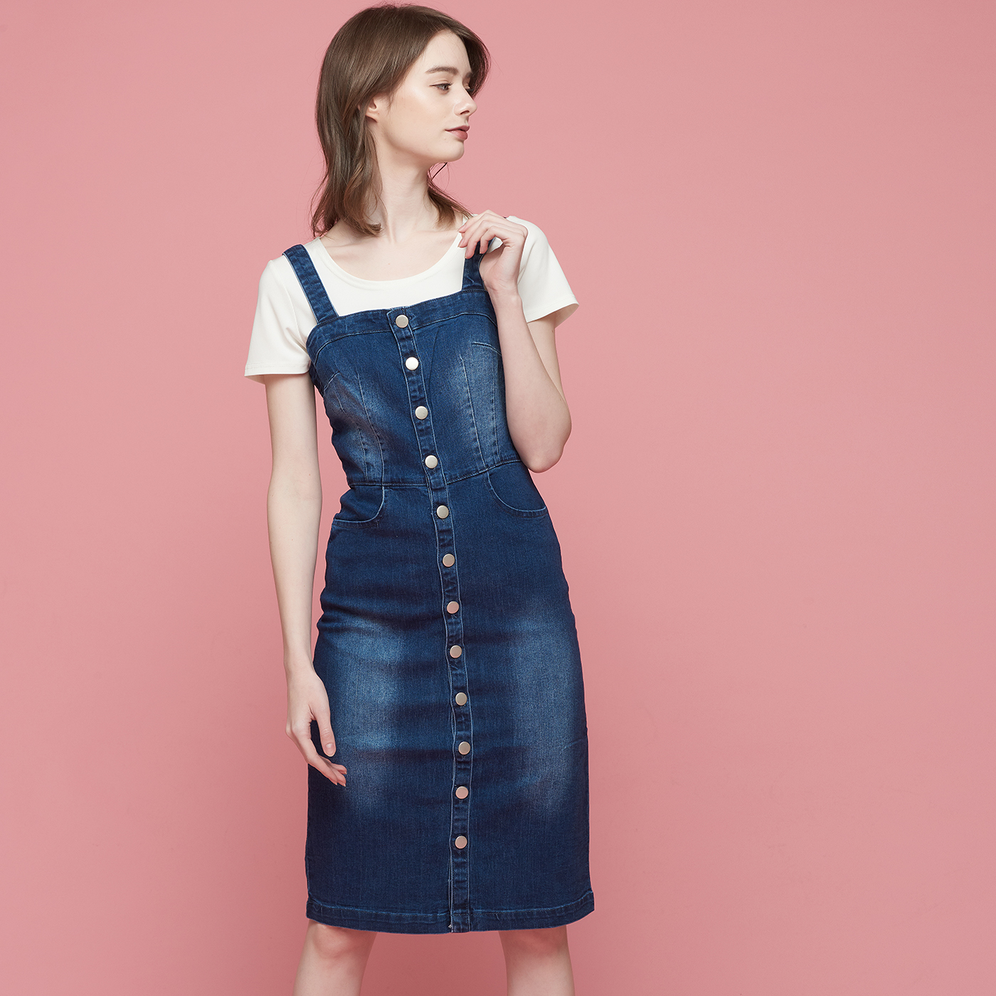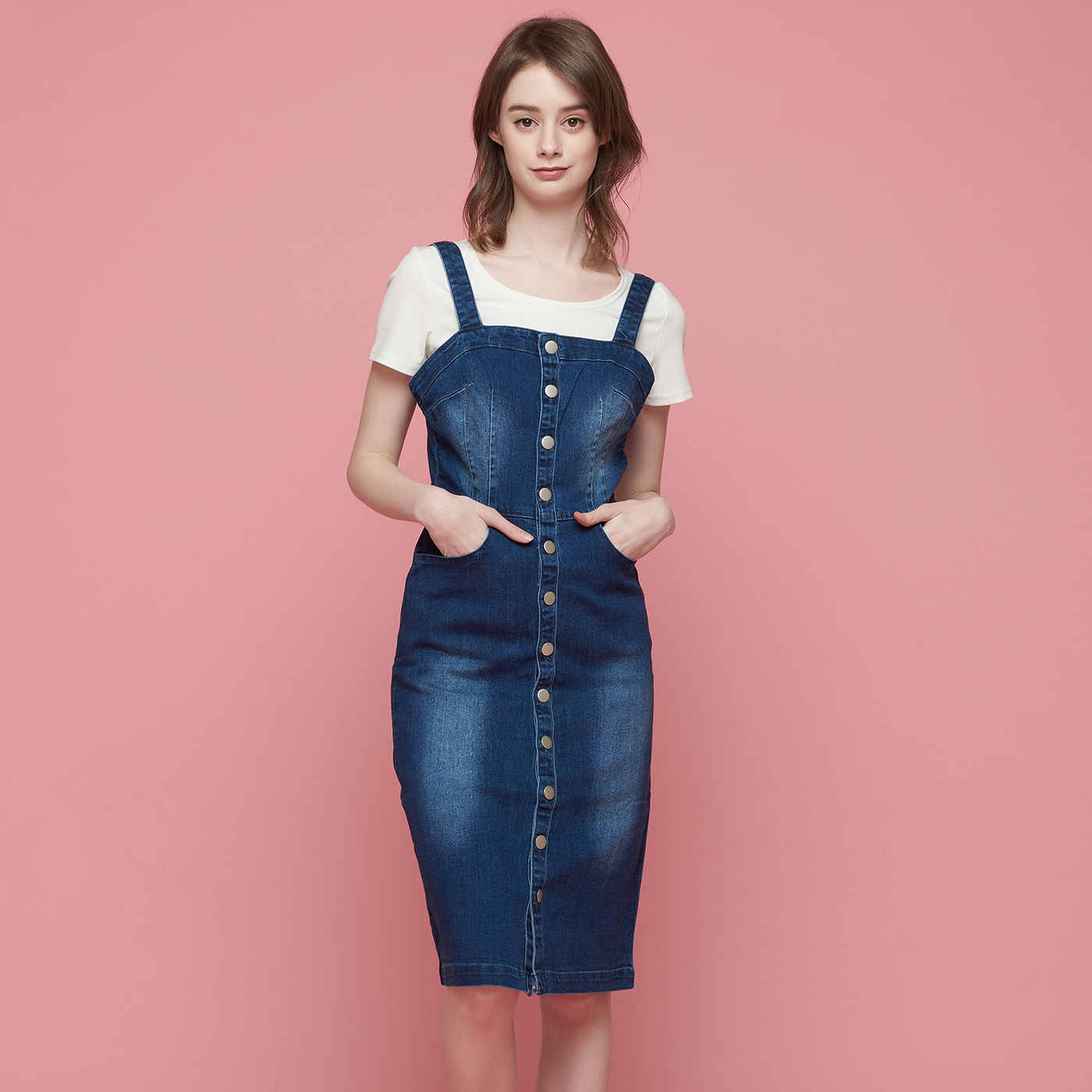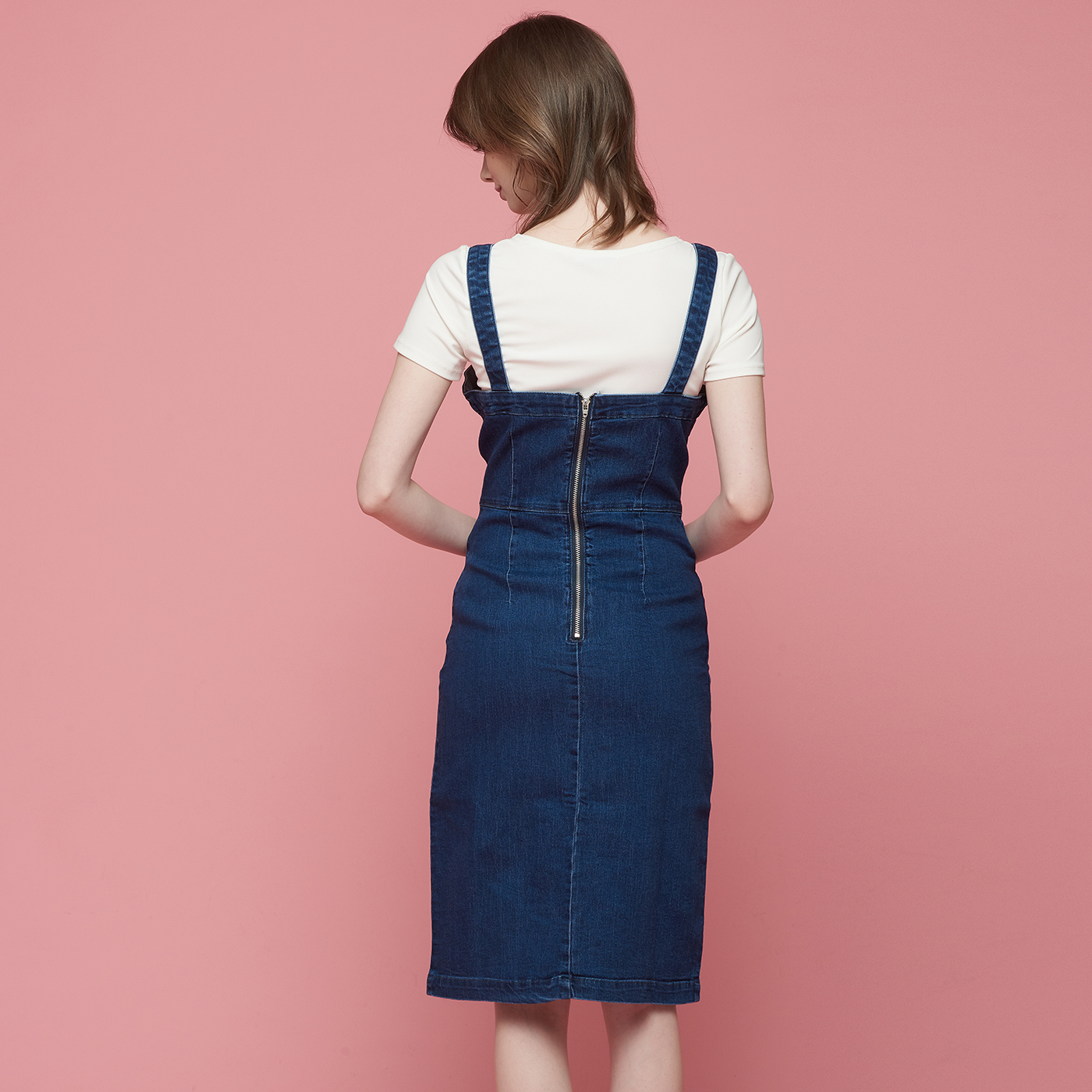 신축성이 있어 편하고 슬림한 스타일의 섹시하고 귀여운 디자인의 데님 원피스입니다.