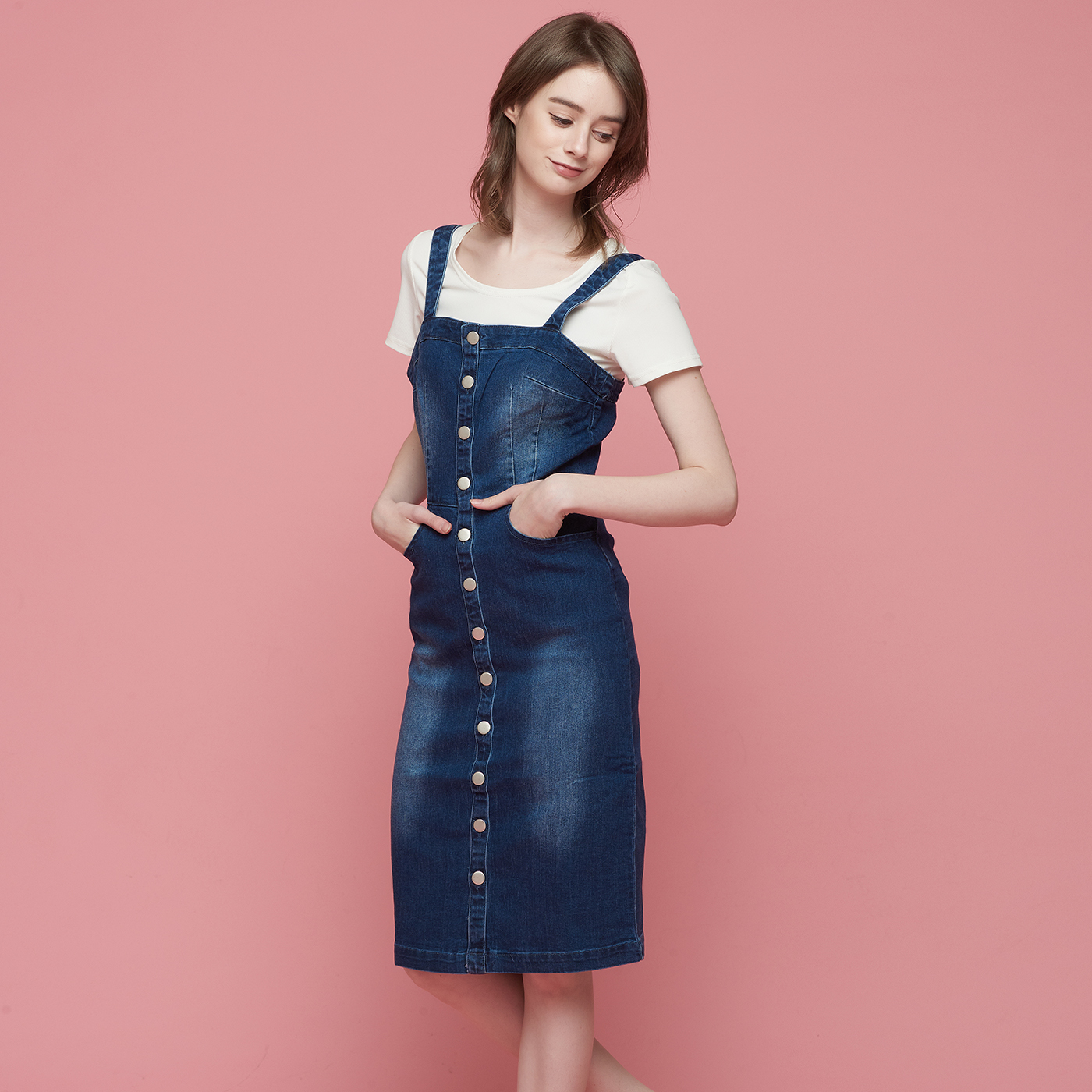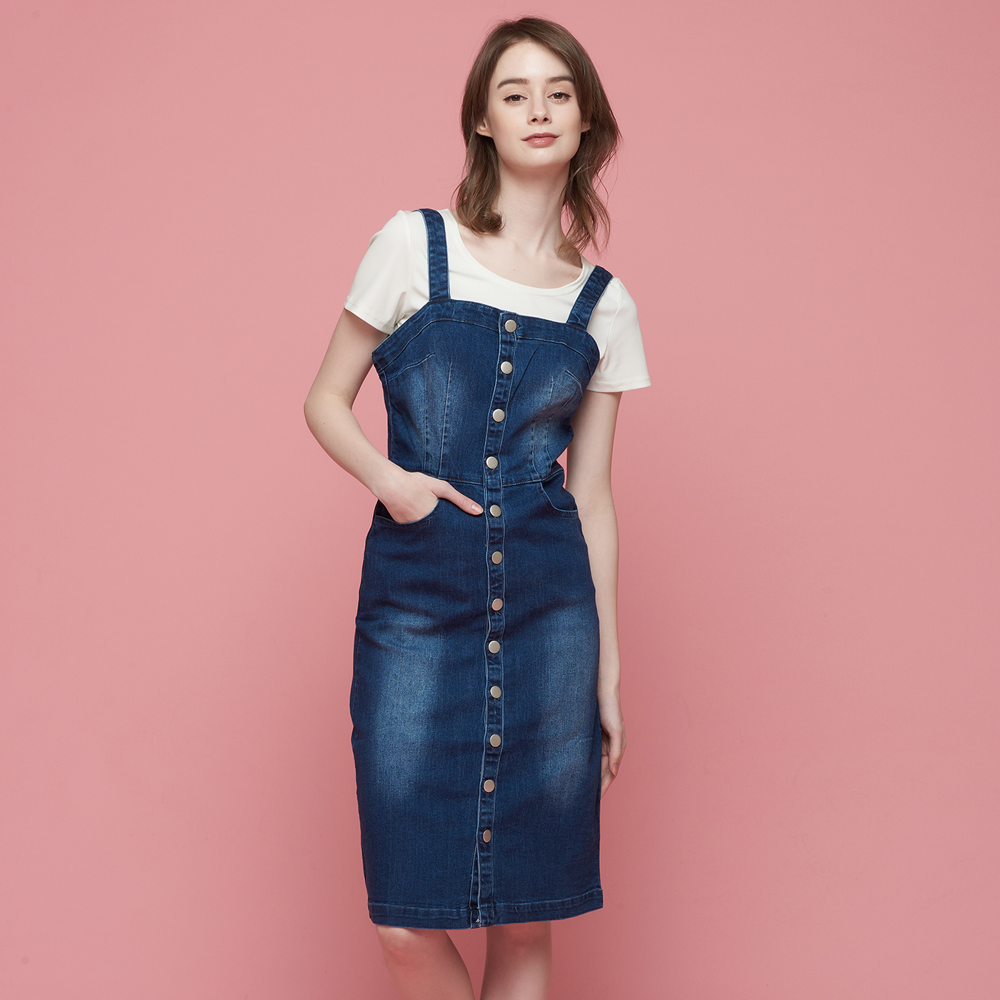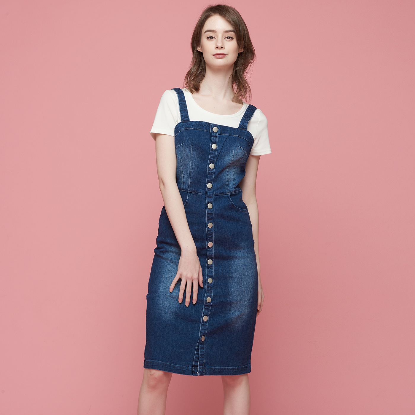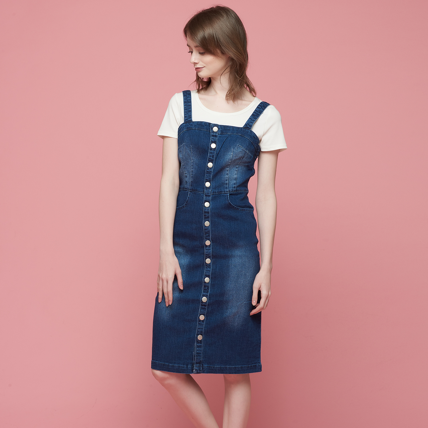신축성이 있어 편하고 슬림한 스타일의 섹시하고 귀여운 디자인의 데님 원피스입니다.