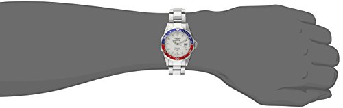 With the affordable silver-tone Invicta Pro Diver SQ quartz men's watch, you can still afford to buy flippers and a pair of goggles. It features a shock-resistant, Japanese quartz movement that will stand up to the rigors of your undersea adventures, and it's water resistant to 200 meters (660 feet). It's topped by a red and blue-plated unidirectional rotating bezel with elapsed time markings in silver and scalloped edges for a firm grip even with diving gloves. The white dial includes large Tritnite luminous markers and hands (with seconds hand) and a date window at 3 o'clock with a magnifier. Other features include a diver's buckle with safety clasp and an anti-reflective mineral crystal.Pro Diver Collection