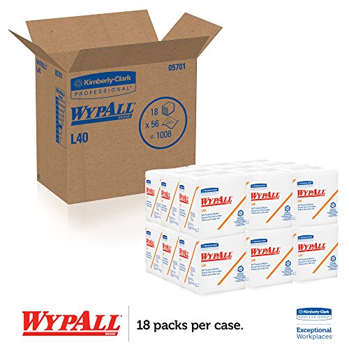 Wypall L40 DRC Recycled Wipers (05701), Disposable Cleaning and Drying Towels, White, 18 Packs / Case, 56 Sheets / Pack