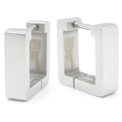 -. Feature : One pair of stainless steel mens hoop hie earrings / Unique square shape hoops. Available in black, gunmetal and silver color. Hinged snap clasp / 12mm outer width and height, 4mm wide / Comes with a gift bag / ** The coin in the picture is a US quarter dollar, for size reference only and not included
