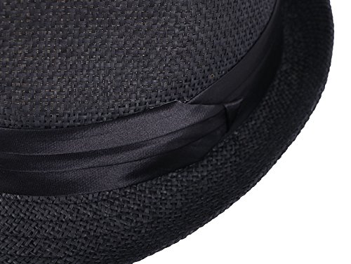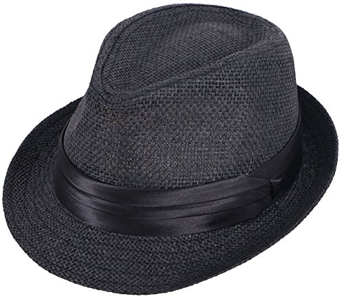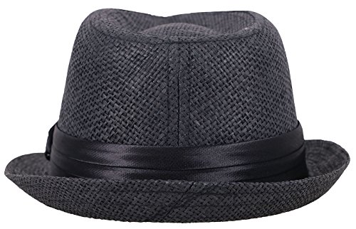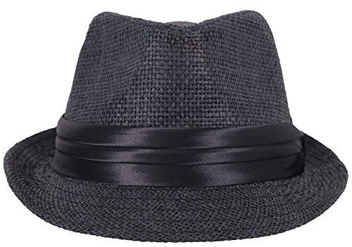 Kids Panama Style Straw Fedora Short Brim Beach Hat with Black Band Accent