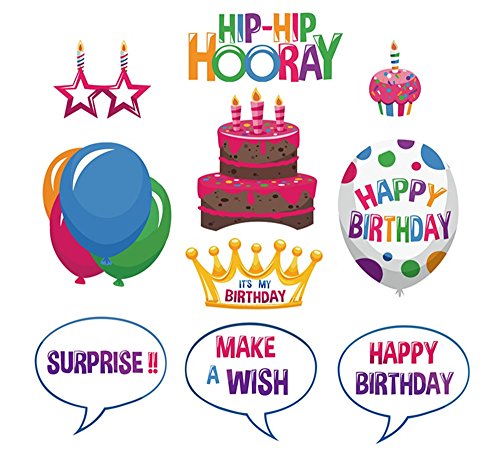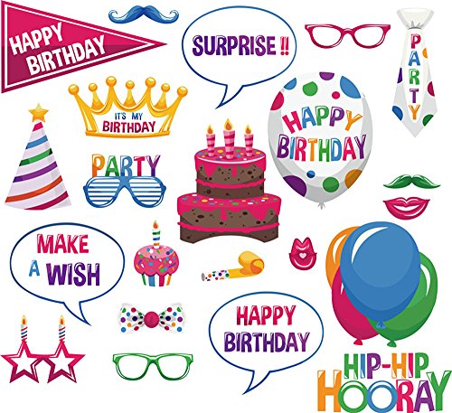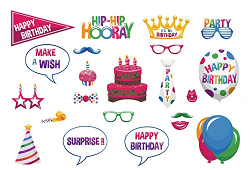 CREATIVE DESIGN--It comes with a variety of cool props for Birthday such as mustaches, lips, hats, eyeglasses, cake and so on, making your events and parties more interesting