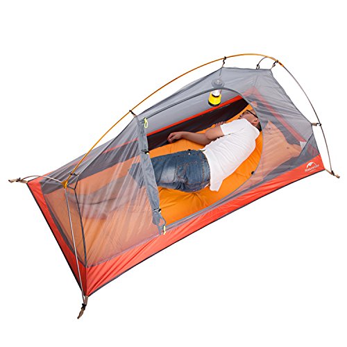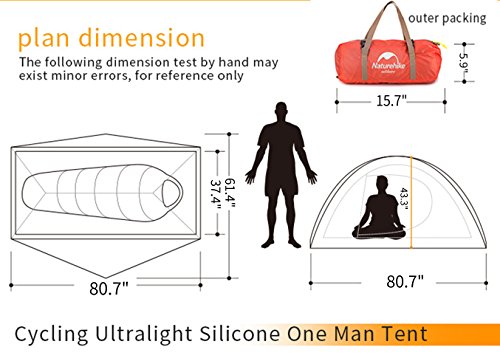 Studio : Naturehike Publisher : Naturehike Product Description Brand: Naturehike Model number: NH18A095-D Color: Orange(210T checked fabric),Sky Blue(210T checked fabric), Size: 2050x(950 600)x1000mm(LxWxH) Package size: 400x150x150mm Weight: 1300g(20D Silicon fabric)(do not include the nails and ropes),1500g(210T checked fabric)(do not include the nails and ropes) Tent Fly material: 20D Waterproof Silicon fabric(20D Silicon fabric),210T Waterproof Checked Fabric(210T checked fabric) Inner tent material: B3 high-precision breathable nylon gauze Frame material: Aluminium alloy Structure: One room Waterproof index: 4000 (20D Silicon fabric),3000 (210T checked fabric) Components: 8 nails,2 ropes,1 set aluminum rod and 1 bag Place of origin: China