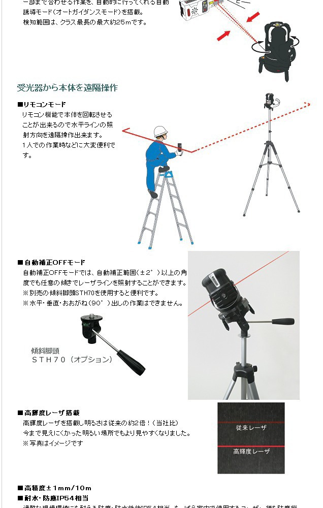●精度:水平・垂直±1mm/10m、鉛直±1mm/5m