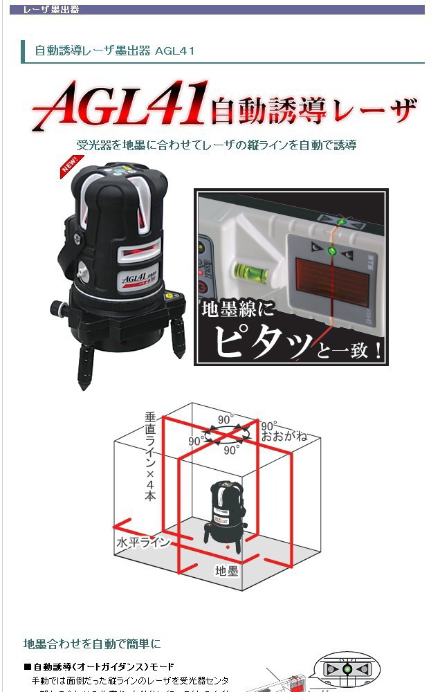 ●手動では面倒だった縦ラインレーザーを受光器センター部まで自動的に合わせる自動誘導モードを搭載しています。