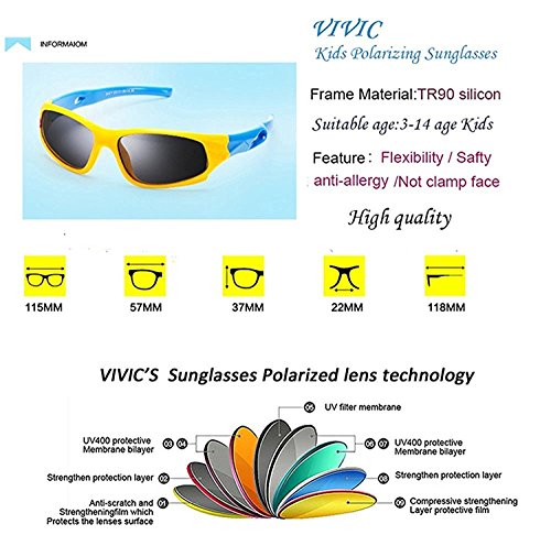 VIVIC Kids Sport Sunglasses Polarized TR90 Silcon For Boys Girls Age 3-14