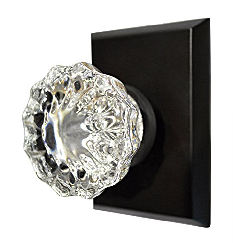 -. Title : Regency Fluted Real Glass Door Knob with Square Rosette in Oil Rubbed Bronze