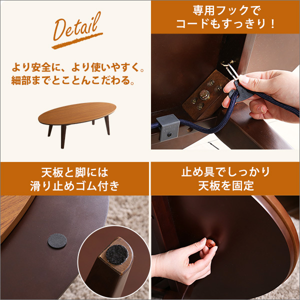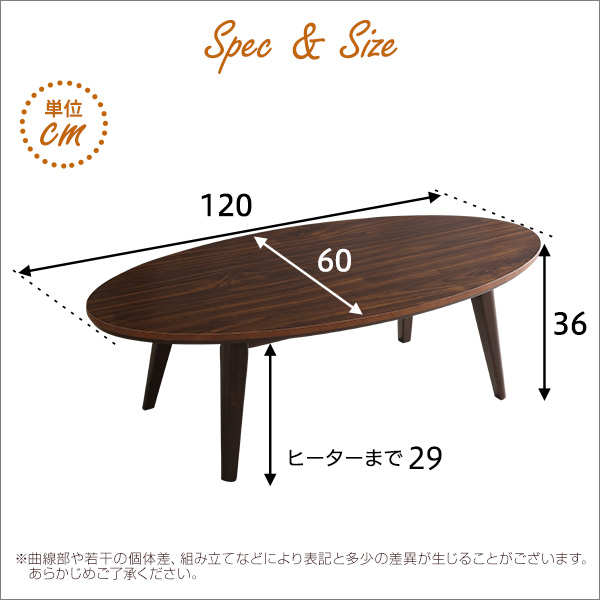 ●サイズは120cmx60cm!丸みがあってじゃまにならない、ちょうどいいサイズの楕円形こたつ【LYNDY-リンディー-】です