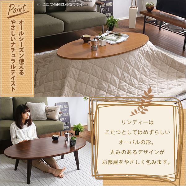 ●楕円形の天板がおしゃれなこたつテーブル【LYNDY-リンディー-】