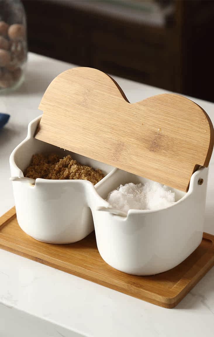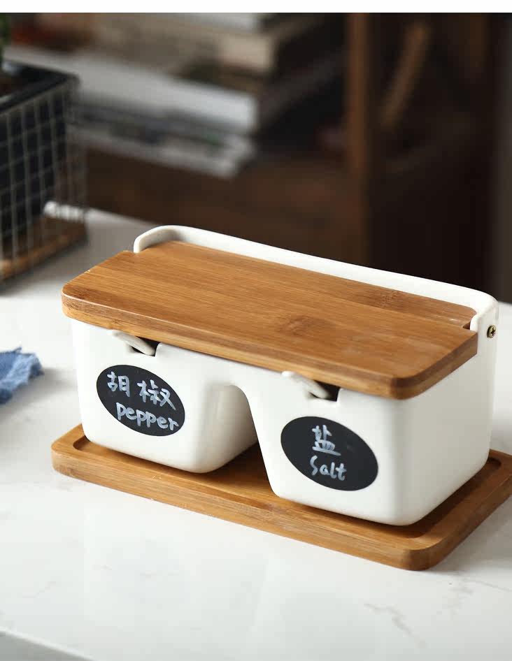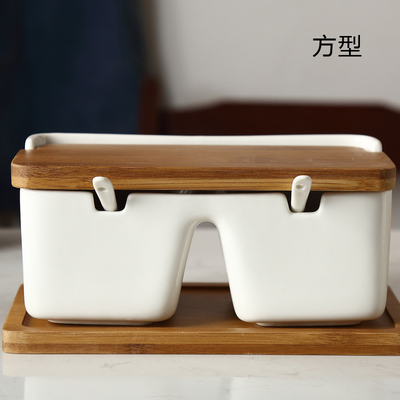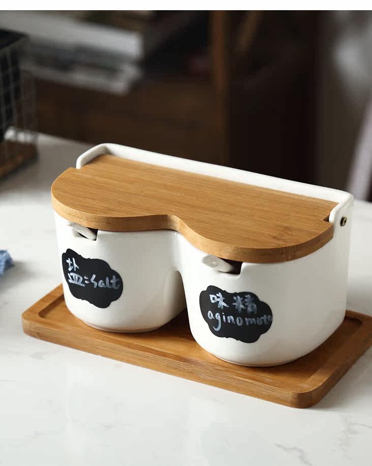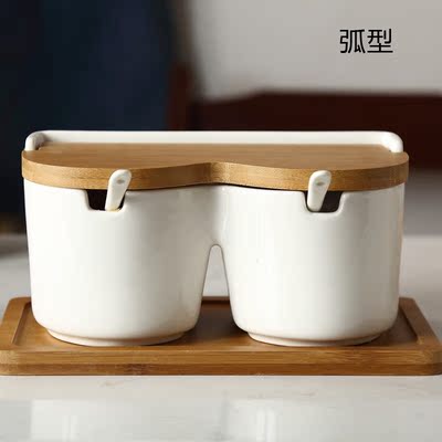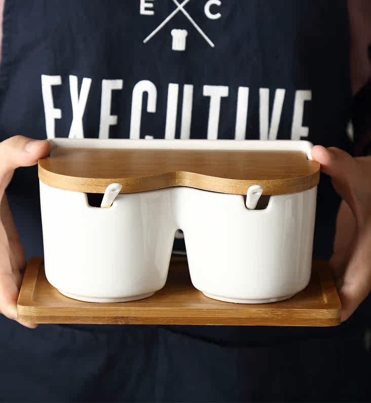 创意陶瓷调味罐调料盒套装 日式家用盐罐竹木白瓷简约搭配