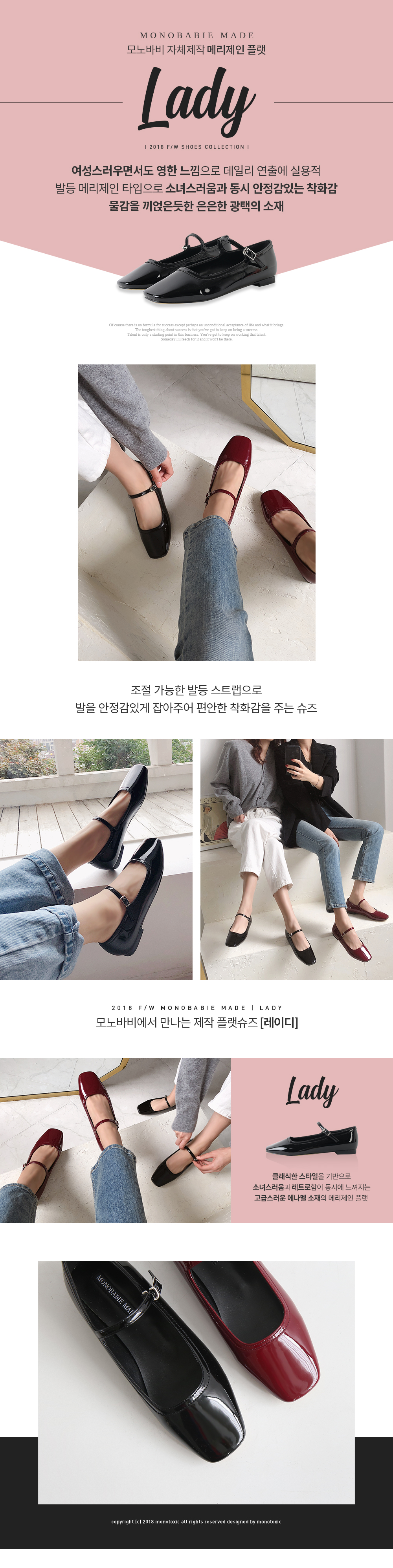 블랙,와인 두 컬러 구성으로 물감을 끼얹은듯한 은은한 광택의 에나멜 소재로 고급스러운 느낌입니다. 소녀스럽고 싶은 날 양말에 매치해도 영-하고 사랑스러운 연출이 가능하며 발등 메리제인으로 오랜걸음에도 발을 안정감있게 잡아주어 착화감까지 편안한 제품입니다.