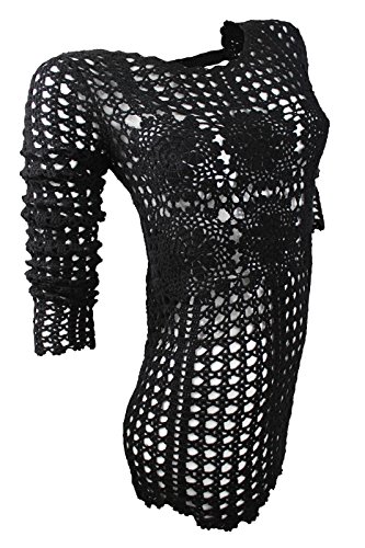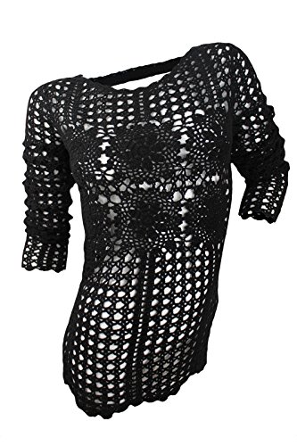 This black open crochet pattern top from free people is crafted in a breathable, soft and comfortable ramie cotton blend and is designed with a regular fit silhouette, scalloped edge scoop neckline, floral pattern crochet at the chest and back, in-set long sleeve, deep V-opening back with crochet trim fastening at the neck and is finished with scalloped edge Hi-Lo hemFeature