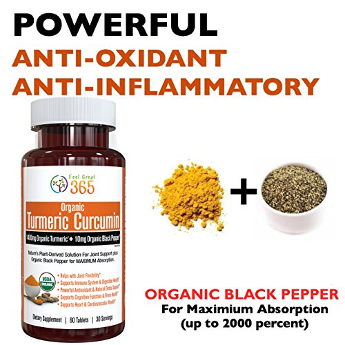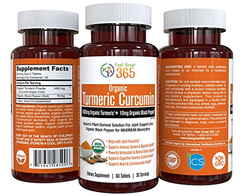 -. Feature : BOOST YOUR ANTIOXIDANTS: If you're like most people, you're simply not giving your body enough core nutrients. Take one serving of Turmeric, and bring your body everything it needs to fight inflammation. With all-natural Curcumin with BioPerine will your body reduce inflammation by inhibiting the body's most reactive inflammation-causing chemicals which are called Nf-kappa beta. / FIGHT INFLAMMATION: Curcumin has been shown in numerous studies to reduce joint pain and soreness, support healthy brain function and cognitive processes, promote a healthy mood, support heart and cardiovascular health, improve digestion, enhance immune and nervous system, promote radiant skin, and much more. / ALL NATURAL & NON-GMO: No hormones, no preservatives, no artificial ingredients, no antibiotics, no gluten, no wheat, no dairy, no sugar, no soy, no yeast. MADE IN THE U.S.A. in an FDA-Registered facility. This product is GMP-certified to assure the highest quality and purity. / MANUFACTURED RIGHT HERE IN OUR PREMIER cGMP FACILITY: Many people are understandably skeptical when it turns out their Turmeric was manufactured in countries which may not employ stringent standards when it comes to manufacturing processes. We manufacture all our products right here in the USA in our GMP-certified facility. This ensures you get the amazing curcurmin you're expecting in every serving.. / GUARANTEE THE GOODNESS: At Feel Great 365, we guarantee all our supplements for freshness, quality and effectiveness. If you're unhappy for any reason with your Turmeric Curcumin with Bioperine, just let us know and we'll immediately send your refund or replacement.