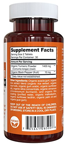 -. Title : USDA Organic Turmeric Curcumin - Highest Potency 1400mg. Pain Relief & Joint Support with 95% Standardized Curcuminoids. Non-GMO, Gluten-Free Turmeric with Organic Black Pepper.