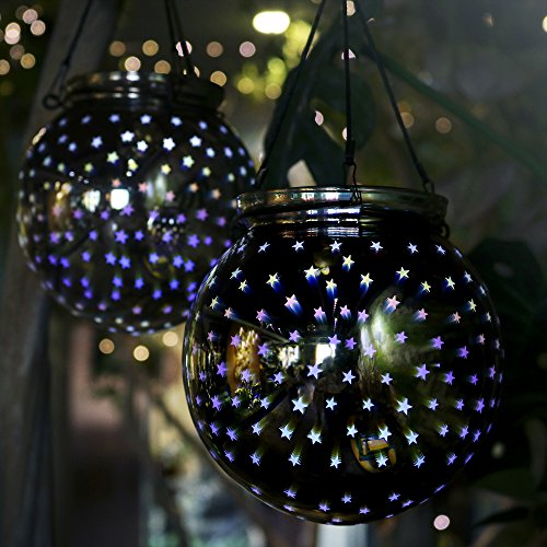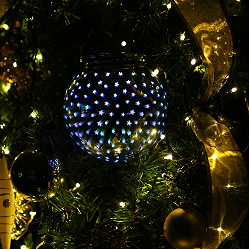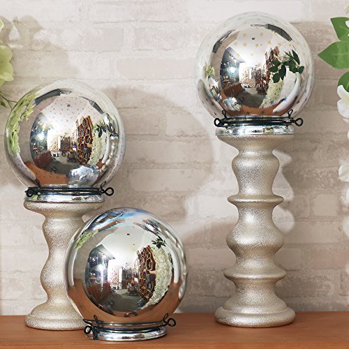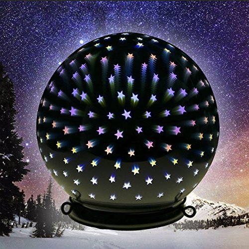 Valery Madelyn Frozen Winter Silver White Christmas Glass Ball Ornaments, Mercury Glass Ball Sphere with Led Light for Hanging and Table Lamp, 6” Diameter (3D Stars)