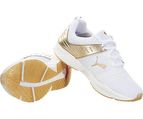 Studio : PUMA Publisher : PUMA Binding : Apparel Product Description Ignite xt v2 using ignite foam which is a superior cushioning material that disperses impact while providing optimal responsiveness. Ignite xt v2 features additional stability in the heel for side to side and dynamic movements. Also the burrito wrap construction for seamless interior and exceptional fit. This gold execution is a women's specific pack for aw16, in includes a crystalized glitter rubber outsole and premium materials with gold details. 0
