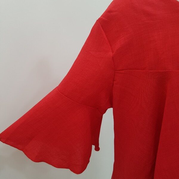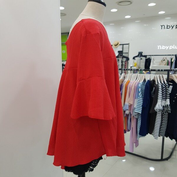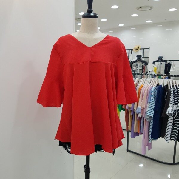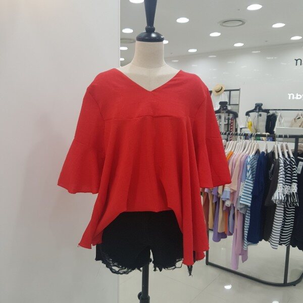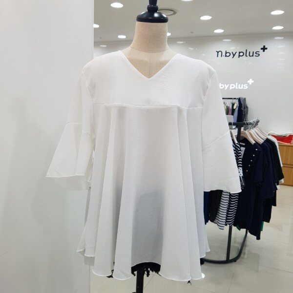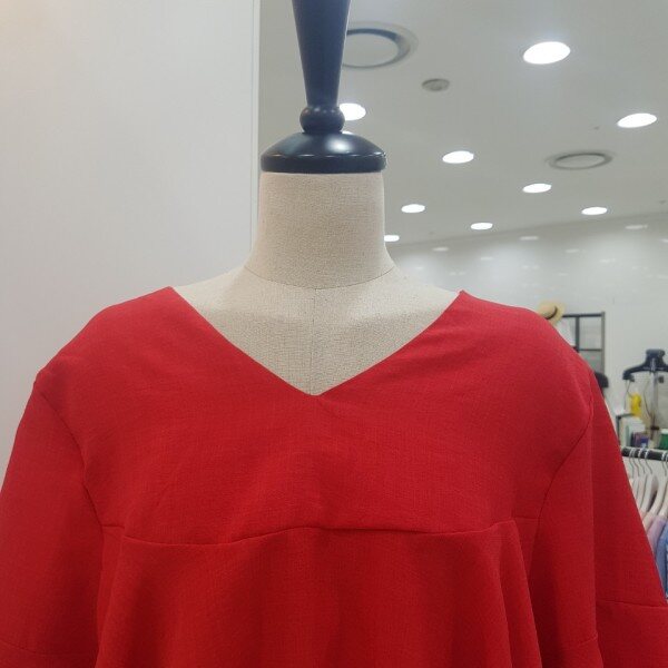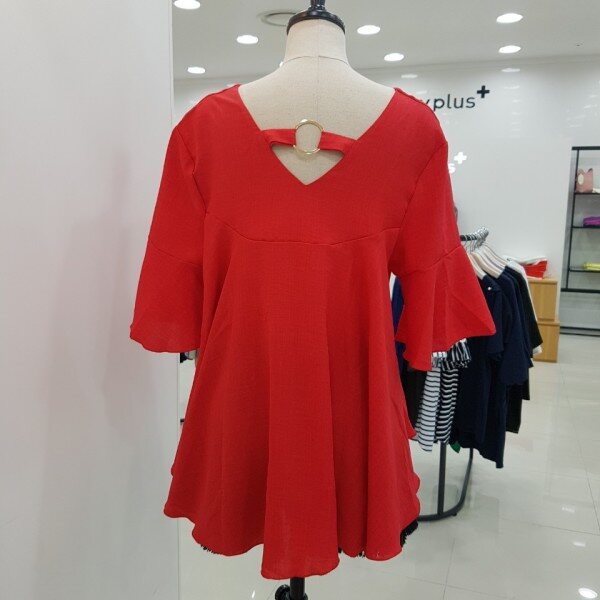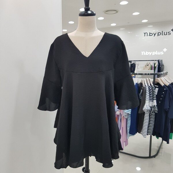 앞뒤 모두 브이넥으로 디자인되어 더욱 시원해 보이는 블라우스입니다.마치 A라인 미니원피스 같은 느낌의 핏이어서 귀여우면서도, 넥라인으로 인해 섹시한 느낌까지 더해주는 아이템이에요.