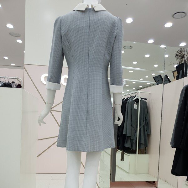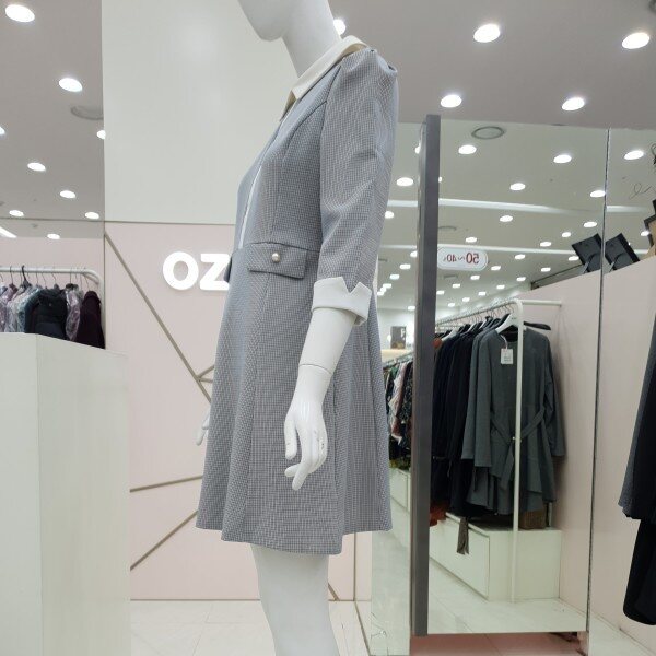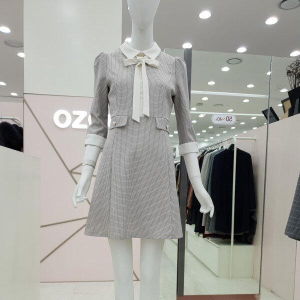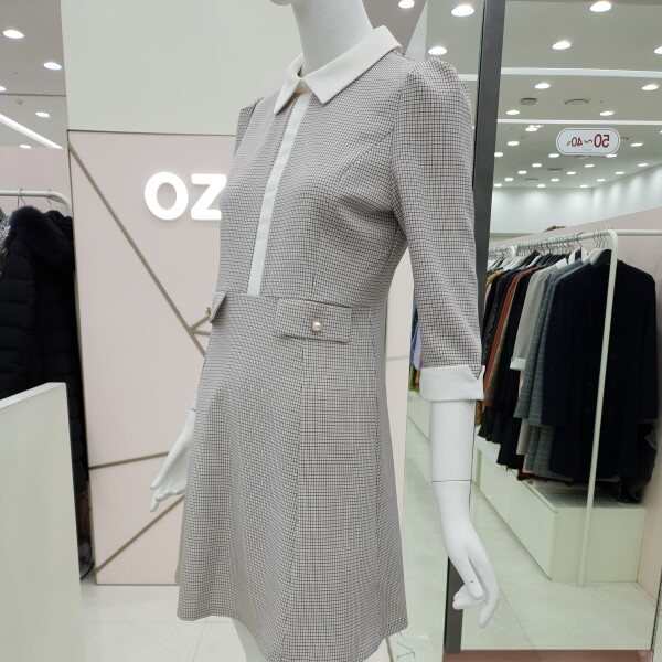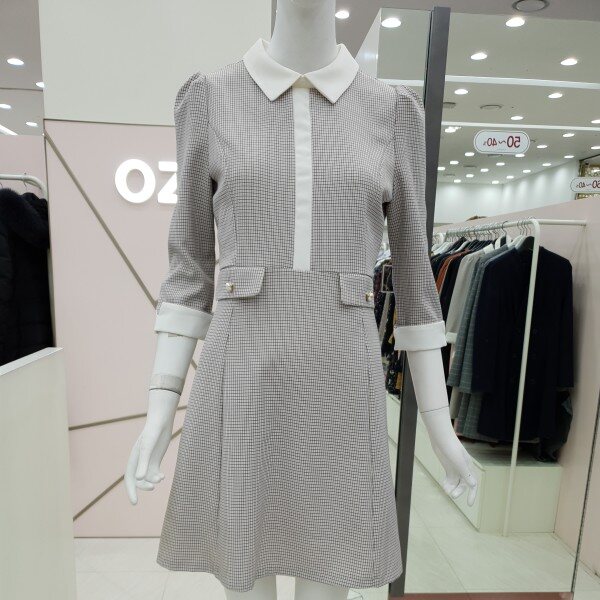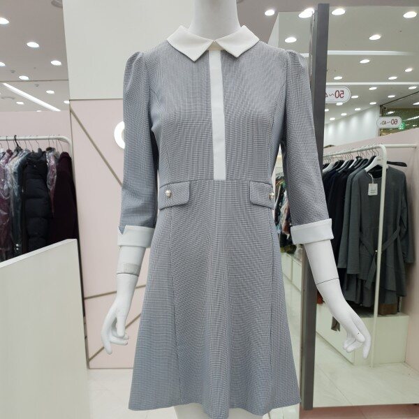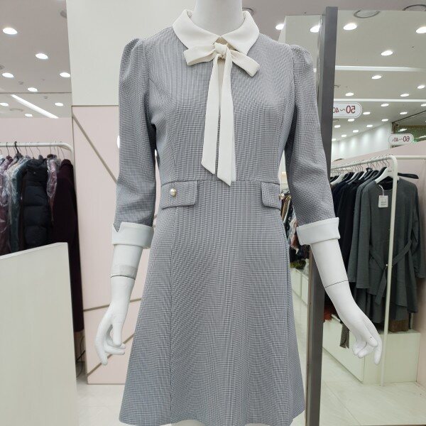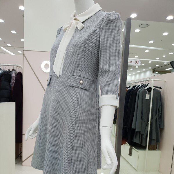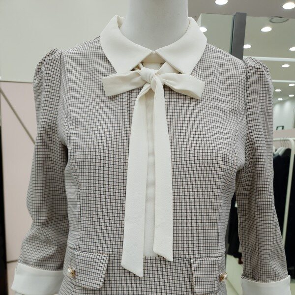 잔단한 체크패턴의 원피스예요.아이보리색 카라아이보리 리본 진주 단추 장식의 페이크 포켓까지여성스럽고 단아한 스타일이예요55/66가슴둘레 88/92허리둘레 72/76총기장85/86