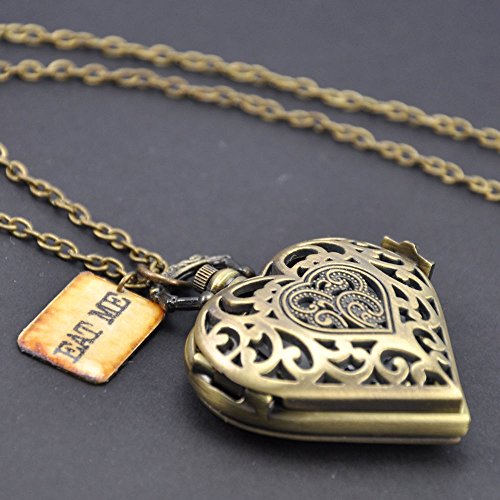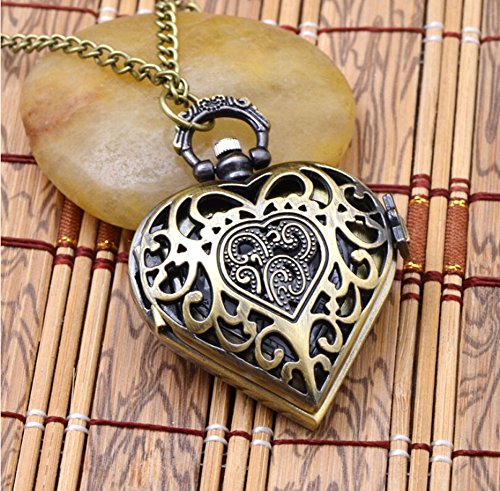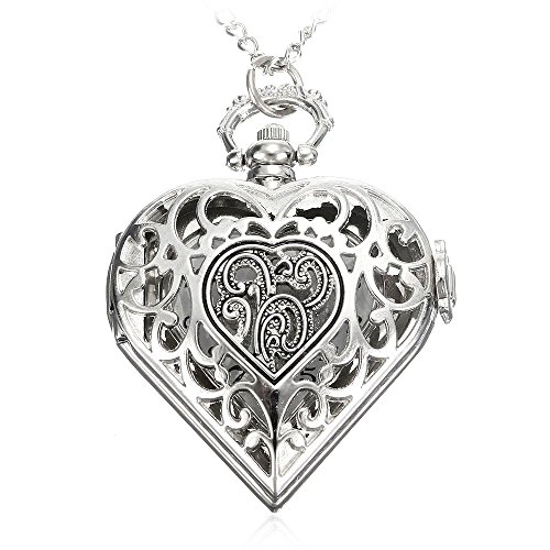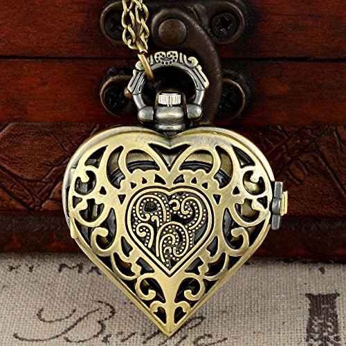 -. Title : REATR Retro Pocket Watch Hollow Out Heart Shape Pendant Necklace Quartz Watch with Gift Chain