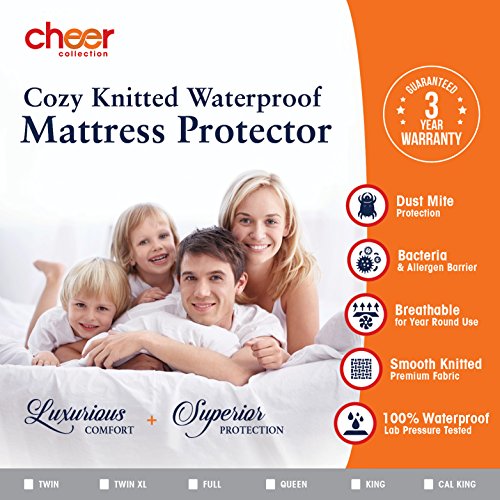 -. Title : Cheer Collection 100% Waterproof Mattress Protector | Quiet Breathable Knitted Stretch Mattress Cover