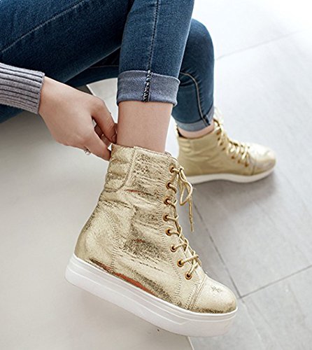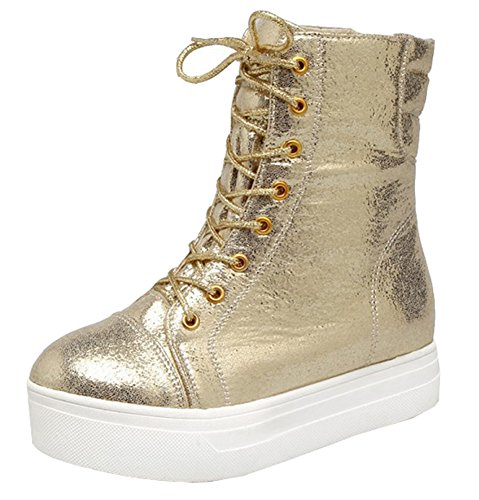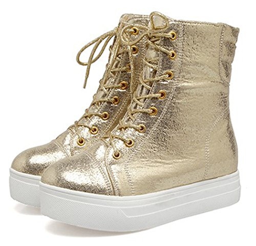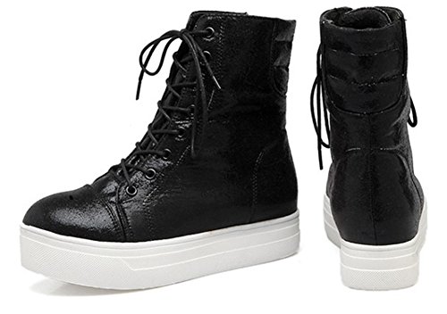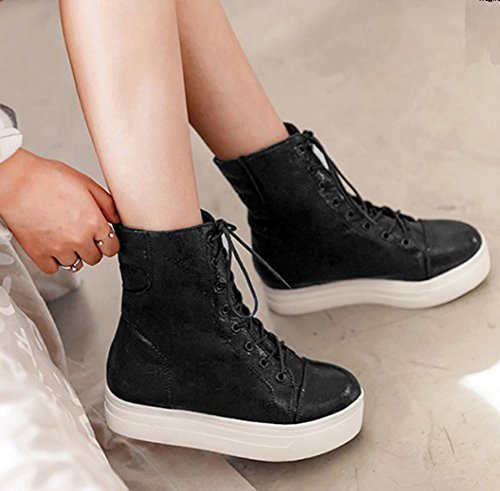 Binding : Apparel Product Description This pair of shoes is for women, girls, juniors and young ladies. You will look stylish and trendy when wearing them. The heels measure 1.4 inches. You will feel comfy in their low heels. Its platform is about 1.25 inches. So you will not feel too tired when walking with them. This pair of shoes features solid upper and ankle high. You will look cute in their round toe design. The lace up design to the ankle will offer you a chic look. The sole is made of good rubber. You will feel comfortable in their soft bottom. They are of high quality and durable. Come on and take them away! 0