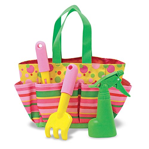 - Sturdy, brightly patterned tote, complete with child-sized garden tools
