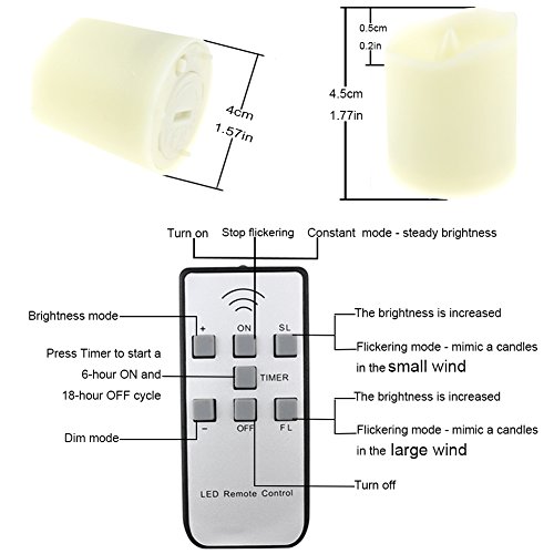 Remote Control & Timer The remote control multiple tea light candles.Besides turning candles on and off, it can change lighting modes, adjust brightness, and set timer.