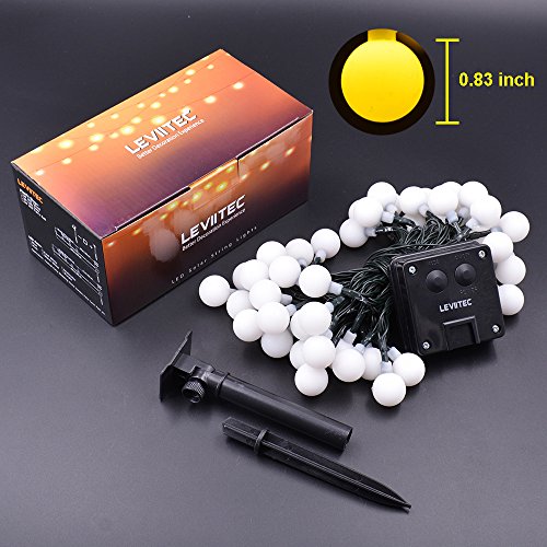 LEVIITEC Solar Party String Lights, 50 LED Outdoor Decorative Lights Fairy Ball with Light Sensor for Holiday, Patio, Lawn & Garden Decorations 22.3ft 8 Modes Waterproof Warm White