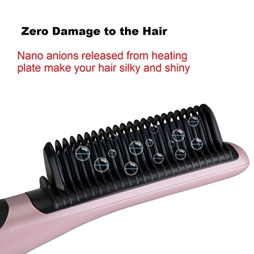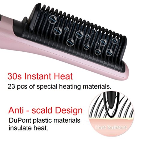 ANTI SCALD, ANTI STATIC AND AUTO SHUT-OFF PROTECTION:Safety auto switch off design, free worry from burning fingers, hands or scalp. It produces anion which can remove hair static. The anion can combine with air to produce moisture and help moisturize hair and prevent hair dryness. Anti frizz iron brush potent mass of negative ions and deliver healthier, shinier hairstyle. Anti-scald anti static anion hair care straightening, easily solve hair knotting, reduce hair broken, repair hair harm.
