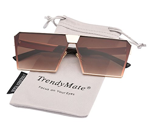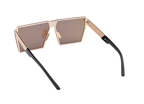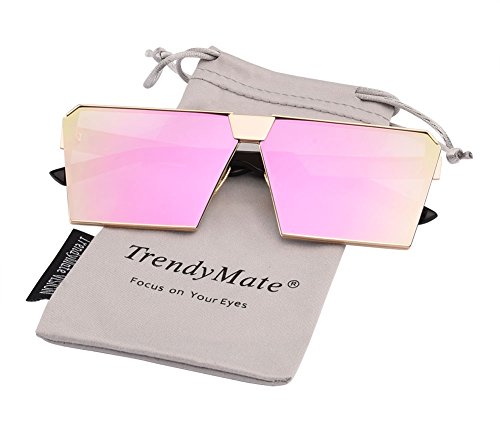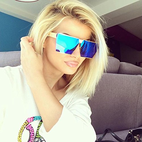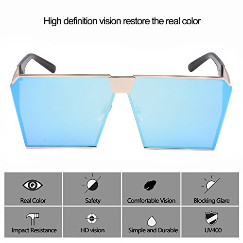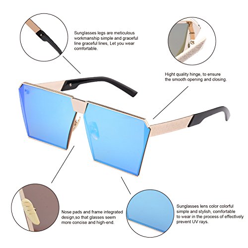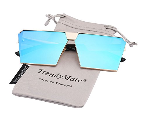 TrendyMate-Womens Men Reflective Color Mirror Lens Large Square Metal Rimmed Sunglasses Unisex (Gold Blue, 65)