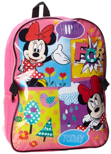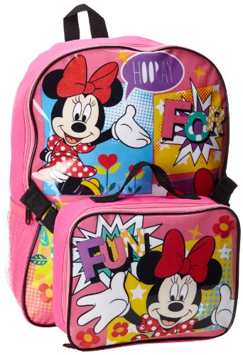 This 16 inch backpack features Minnie mouse and friends and comes with a detachable lunch kit.