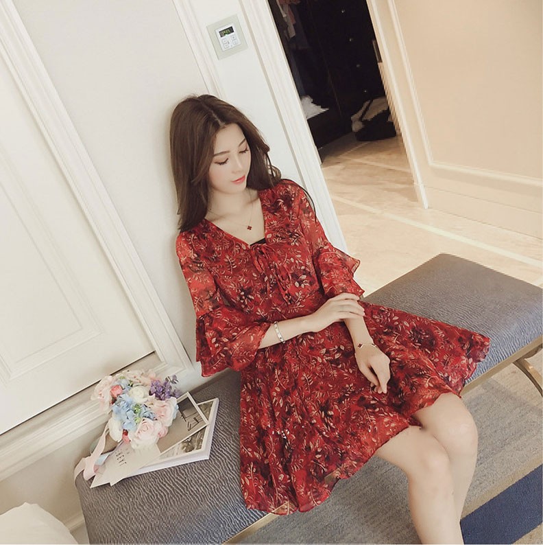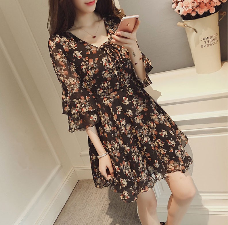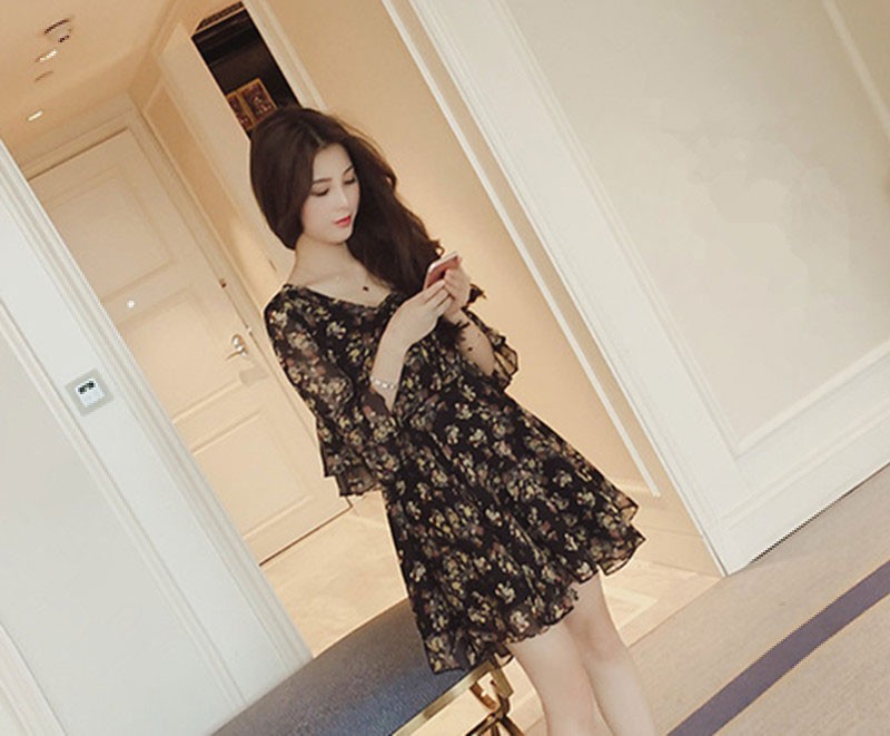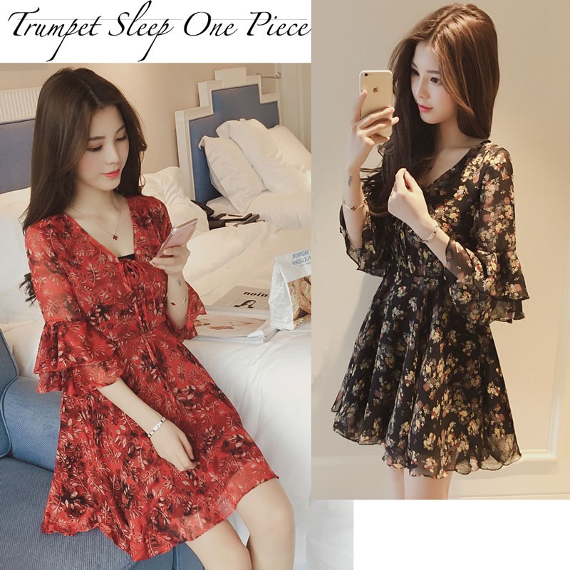 フラワープリント・ベルスリープのふわふわシフォンミニ丈ワンピース♪