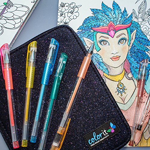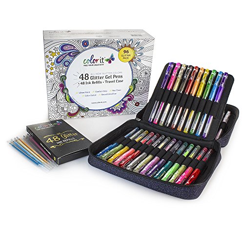 -. Feature : 48 All New Glitter Color Gel Pens by ColorIt, Creators of Premium Adult Coloring Books / Includes Sparkling Travel Case and 48 Matching Glitter Gel Pen Ink Refills / 1.0mm point - Exclusive colors, skin tones, browns, greens, blues, and plenty of purples / Color named and number coded for easy replacement / Superior customer service is only a message away. Buy with confidence