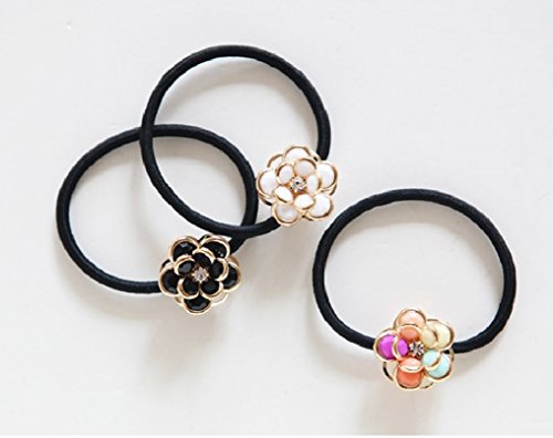 -. Title : 【限定特価】ハッピーフラワーヘアゴム カメリア ヘアゴム ホワイト ブラック カラフル3点セット