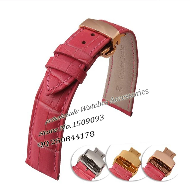 | [해외]소 가죽 정품 가죽 손목 나비 버클 가죽 시계 스트랩 여성 시계 밴드 핑크 여성 시계 액세서리 22 미리메터 |