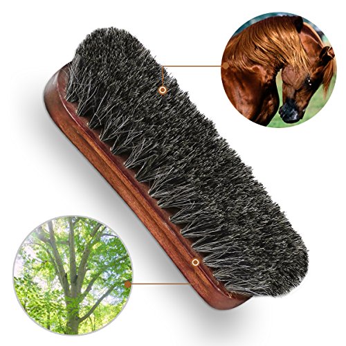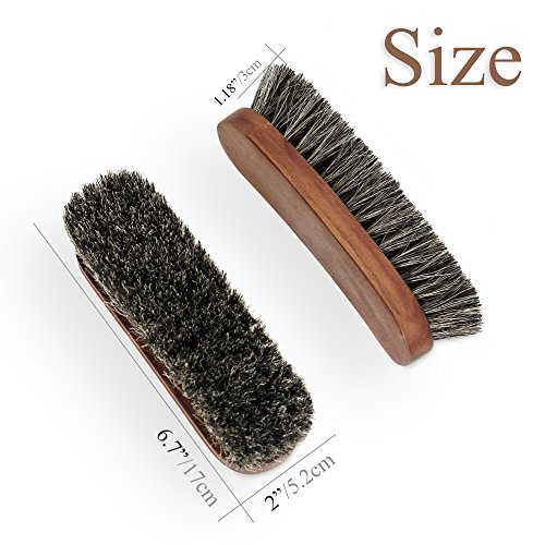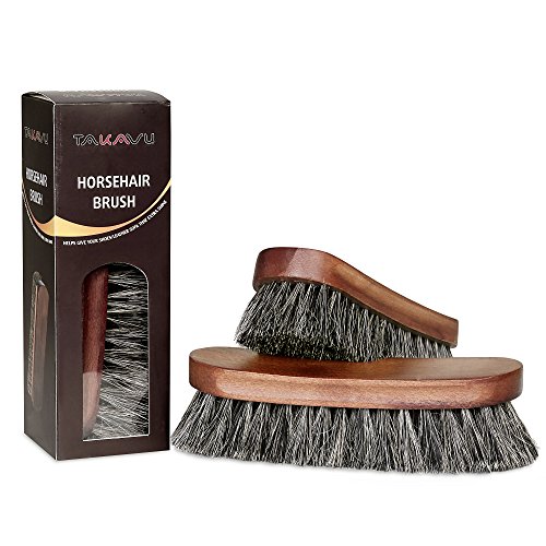 Polishing Brush for high shiny shoes After cleaning your shoes with a shoe cream, you need a polishing brush to remove the excess cream from the leather upper. After a few minutes, the leather is saturated and offers a semi-gloss shine. If you rub the bristles upon the leather, you create warmth. This in turn bonds the small wax particles in the polish to the leather upper and gives your shoes an inimitable shine. Why You Should Choose Takavu Horsehair Shoe Shine Brushes? √100% Genuine horsehair will offer the best protection for your leather products. √Big enough to get a good grip on and buff a significant section of shoes and boots and other leather accessories. √Extra long hair adds extra life to brush scratch free. √Polished wood handles helps to keep shoe cream out of the handles. Tips: When you first use the leather cleaner to clean your leather products (Such as: shoe polish, spray, foam, etc.), please use a little leather cleaner to make a test in a small piece of the leather. If you can accept the effect of color, you can wipe the overall leather. some leather may lead to fade due to the different material of leather, so please do a test in a small piece before using. Long time to use the polishing bristles, there may be a small amount of bristles fall(just a little,you just gently wipe it), please notice that after using shoes brush, clean up in time,stay it dried into the box inside to facilitate the next use About Lossing Hair: The new brush in the beginning of using, will happen hair lossing phenomenon, because the horse is implanted in the wooden handle, the processing process will have some broken horse hair mixed in, this is a normal phenomenon, the use of a few times, will not happen again. Just keep calm to use it. 0