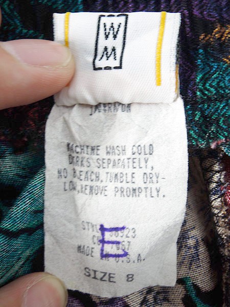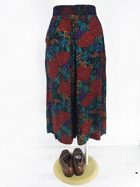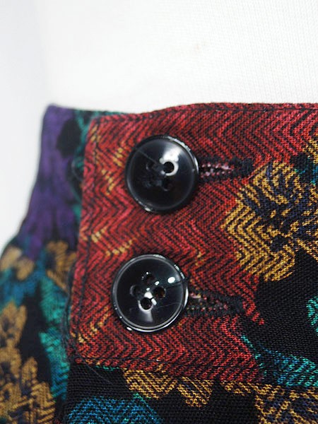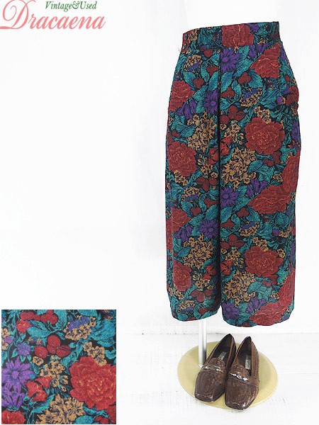 Ladies ブランド- カラー黒ベース・カラフル メール便不可 コンディション★★★ 素材レーヨン 表記サイズ8 スタッフコメント裏地なし、若干のスケ感があります。ウェストがマリンパンツのようなデザインです。 実寸サイズ 着丈 75 cm ウエスト 64cm 〜 76cm (25インチ〜30インチ) レングス(股下) 15 インチ(39 cm) 股上 35 cm 太もも幅 33 cm 裾幅 37 cm ※ウエスト・ヒップ以外は平置き採寸