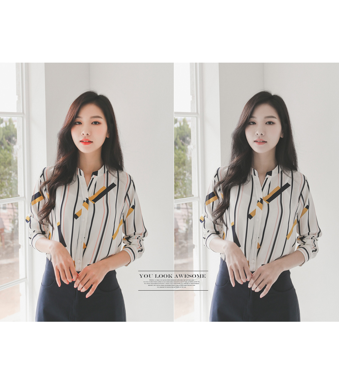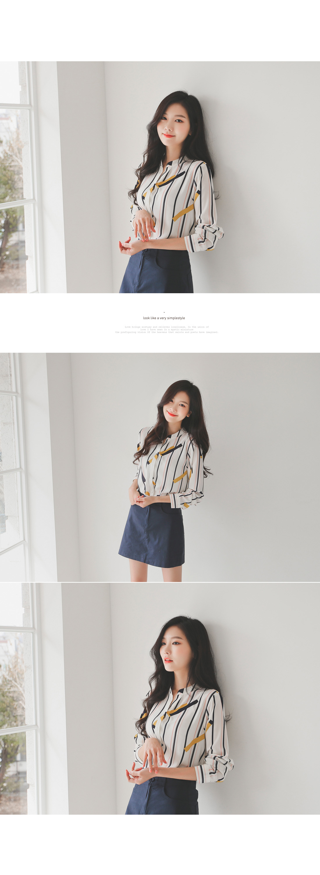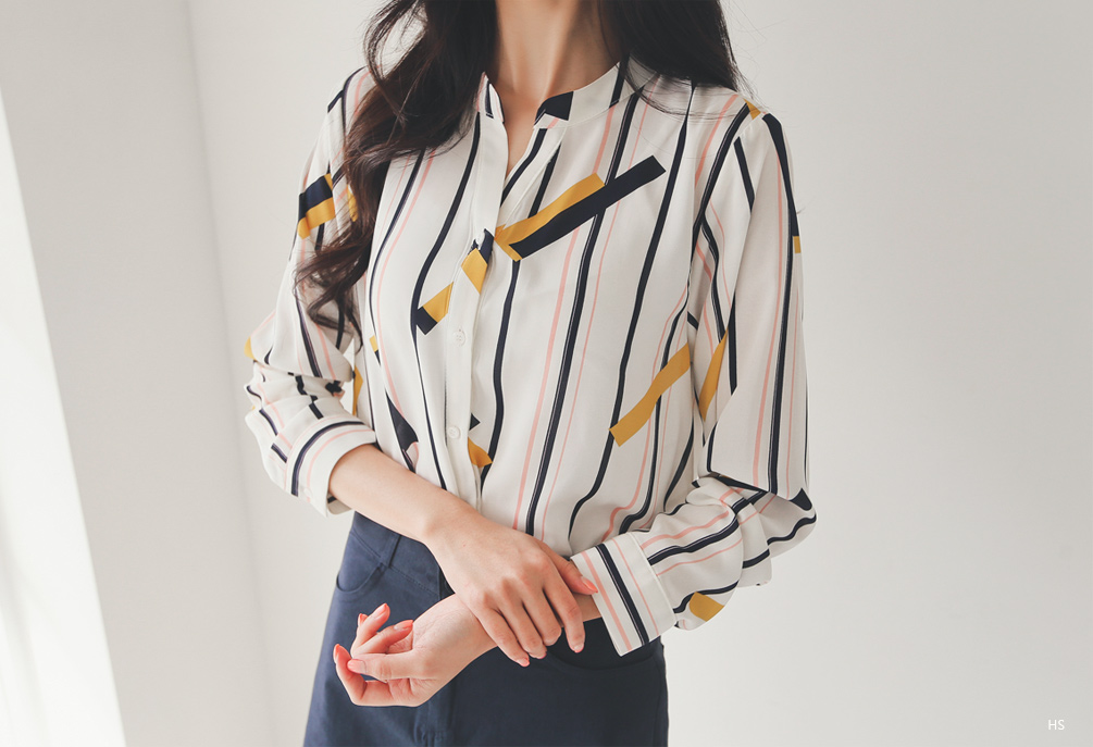 세련된 무드로 즐기기 좋은 줄지블라우스!