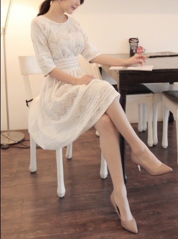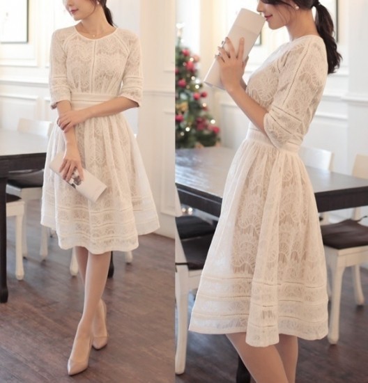 総レースデザインが、エレガントで上品なミモレ丈ワンピース。
