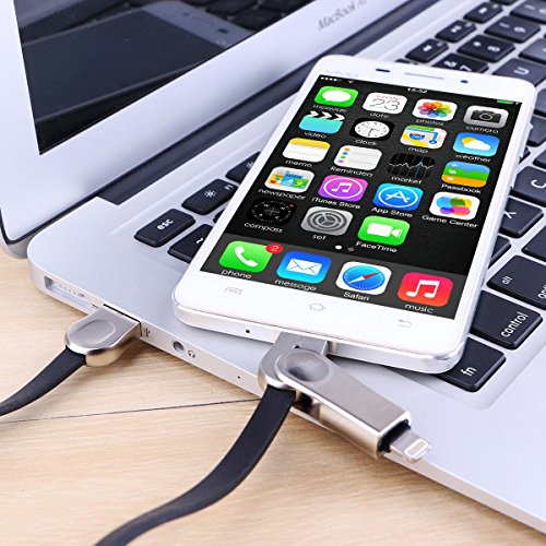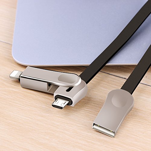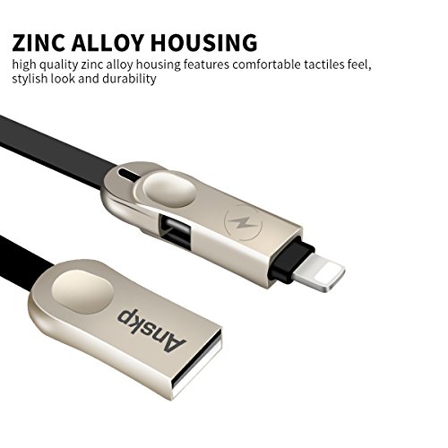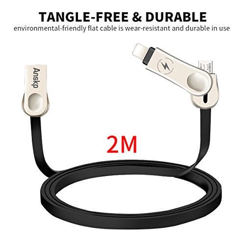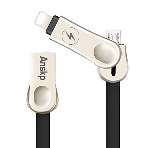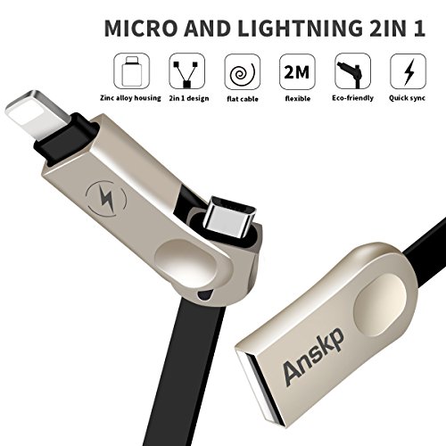 Anskp Lightning USB Cable, Zinc Alloy 2 in 1 Fast Lightning/Micro USB Charge and Sync Data Adapter for iPhone Android Smartphones Tablets (6.6 ft, Black)